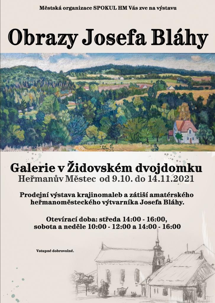 Prodejní výstava krajinomaleb a zátiší amatérského heřmanoměsteckého výtvarníka Josefa Bláhy.