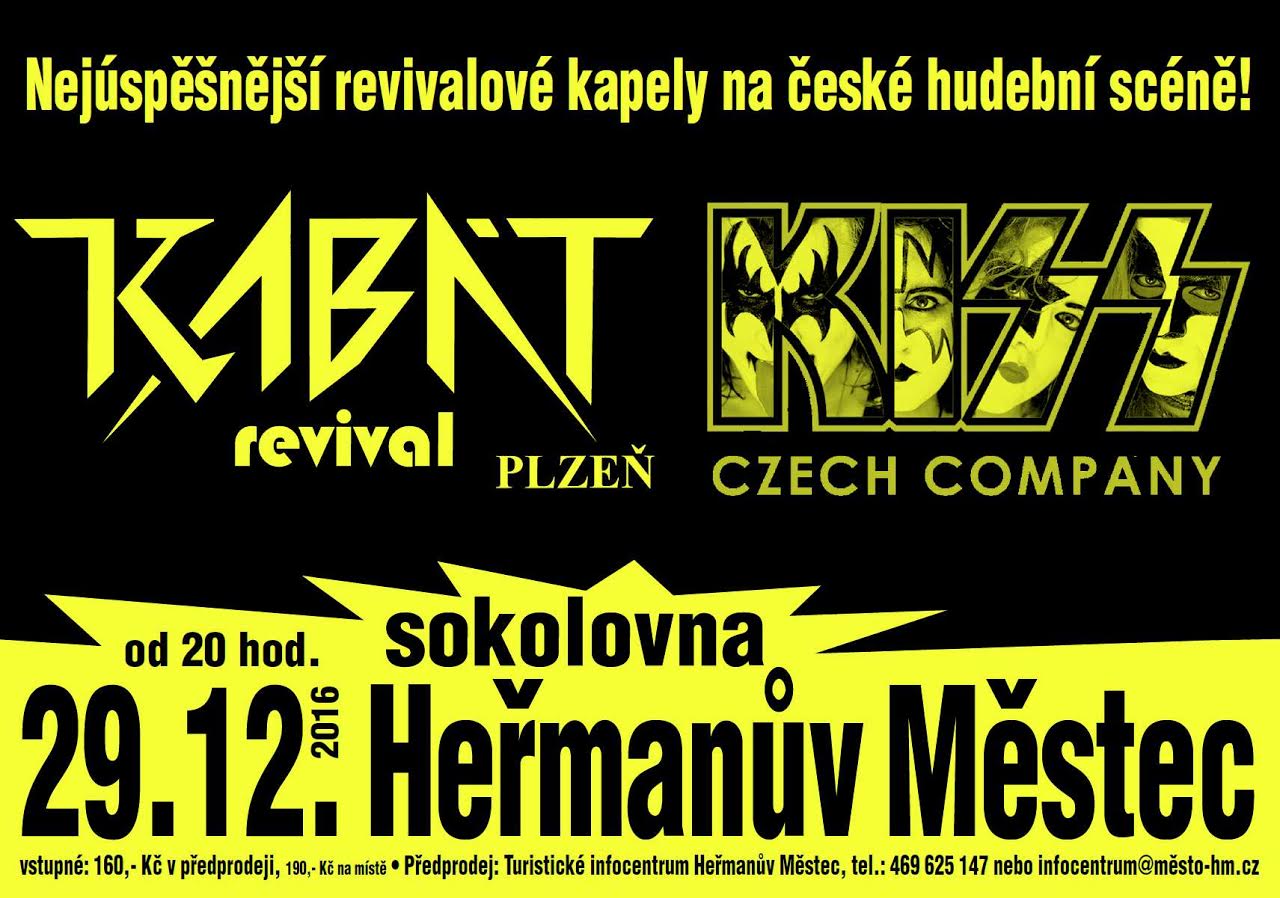 Ve čtvrtek 29.12. vás zveme na rockovej mejdan do sokolovny v Heřmanově Městci, kde zahrají dvě revivalové kapely - KABÁT a KISS.